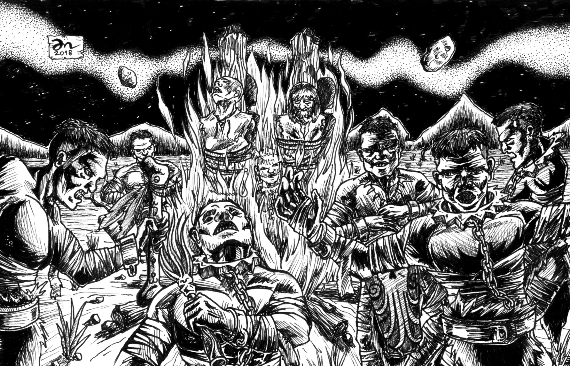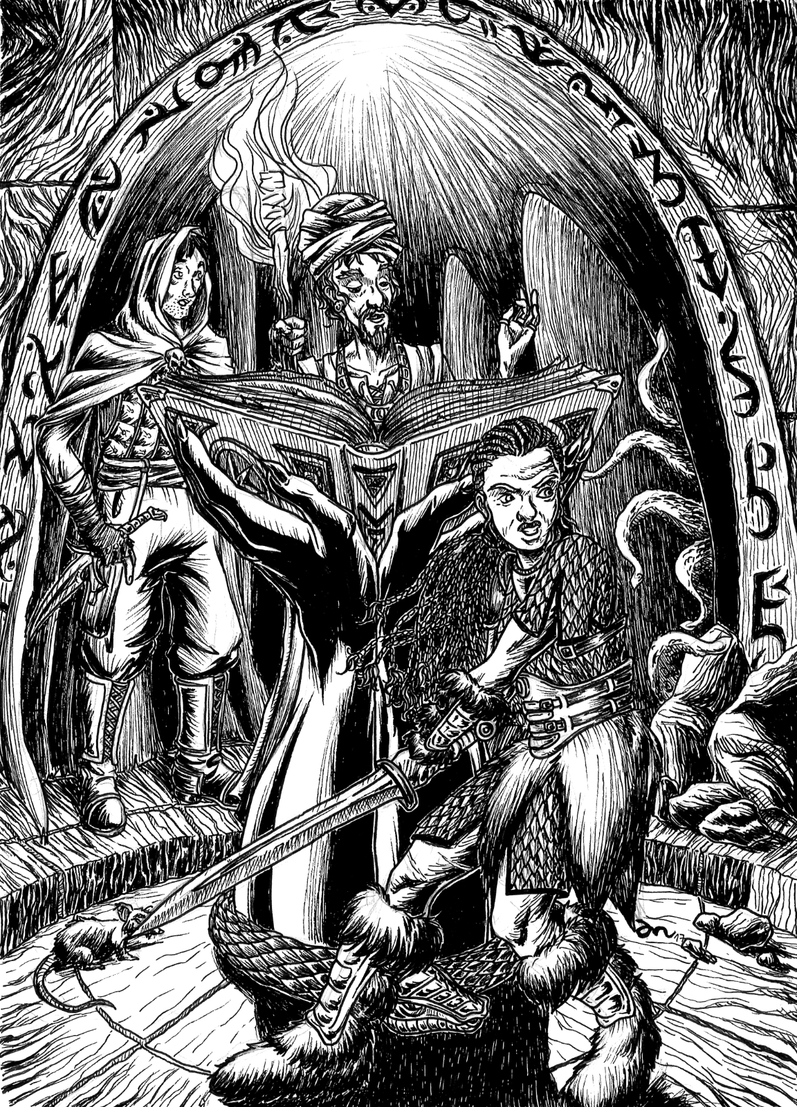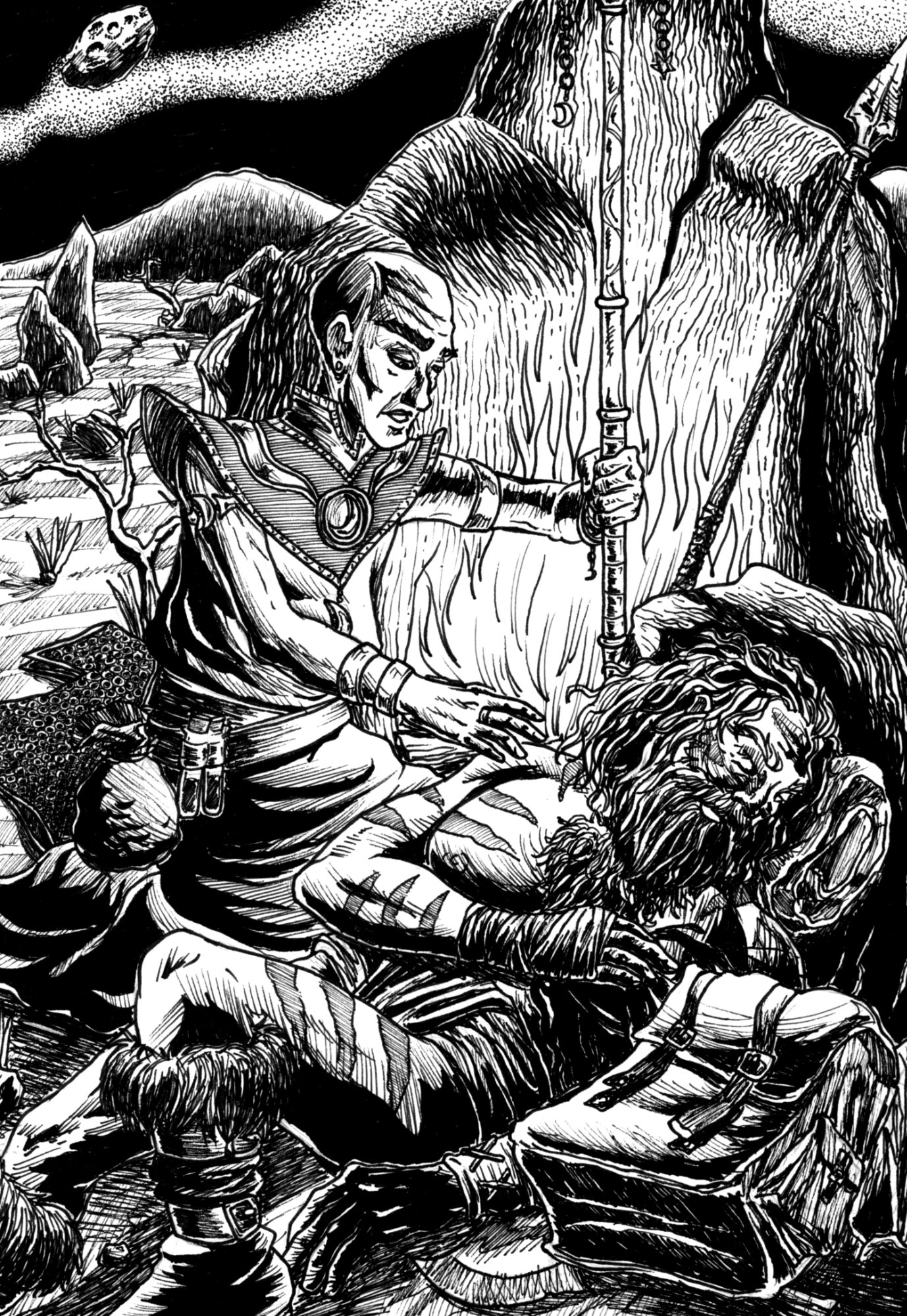 Below you can find a sample of my work. I mainly work with traditional media, using paper, ink, washes, watercolor and such, but I can work with digital art as well.